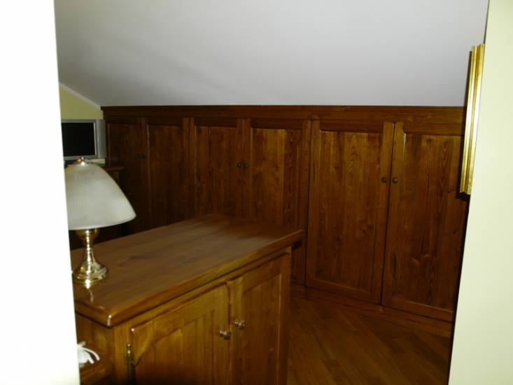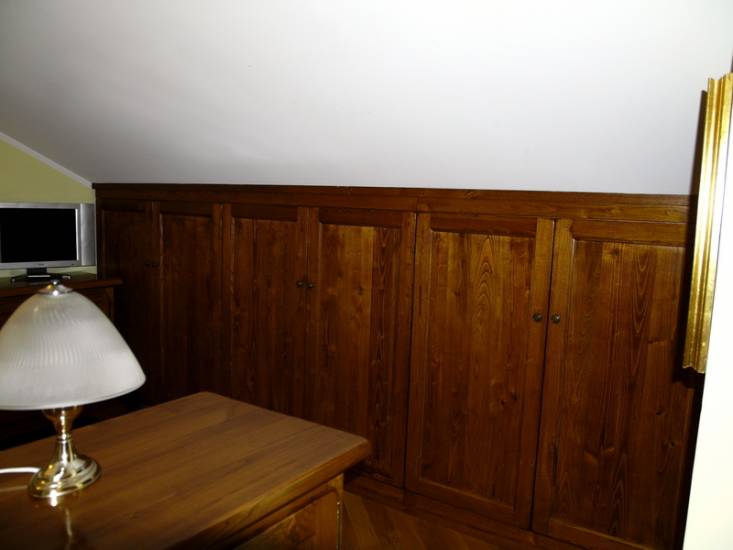 Armadio mansardato su misura in legno. Realizziamo armadi, letti e complementi personalizzati in qualsiasi essenza e che faranno della vostra stanza un ambiente confortevole e di classe. Fabbrichiamo armadi country, armadi classici, armadi moderni e armadi di lusso creando soluzioni originali che unite al fascino dei nostri letti contenitore, letti a castello e testiere da letto di ogni design renderanno la vostra camera da letto assolutamente unica. Gli arredi delle camere e camerette da letto possono essere tinteggiate con tecnica decapè, tinteggiature classiche come color cuoio, color miele, color ciliegio, color rovere o modernamente laccate. La falegnameria Gli Artigiani dei f.lli Cordi realizza oggetti in legno su disegno e personalizzati che vengono ultimati con laccature o verniciature di altissima qualità su campione di colore. Maestri del legno in Roma - Arredamento made in italy classico, di lusso, moderno, country - Realizzazione di mobili su misura come: cucine, camere, armadi, porte, finestre, scale, oggettistica, mobili da bagno, sedie, tavoli, credenze, librerie, saloni, boiserie, controsoffitti. Falegnameria Gli Artigiani dei f.lli Cordi