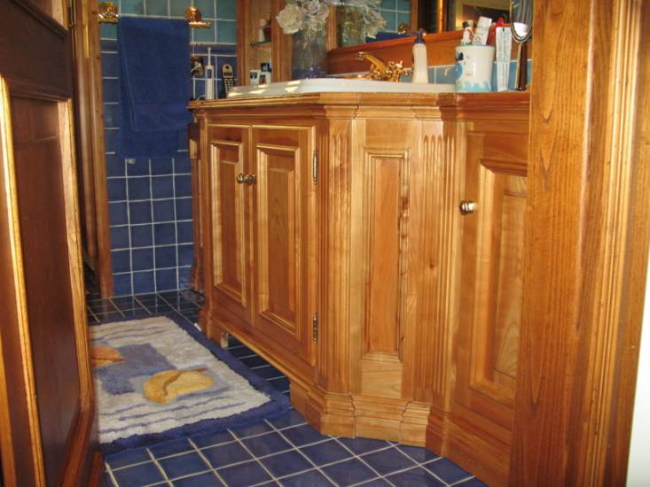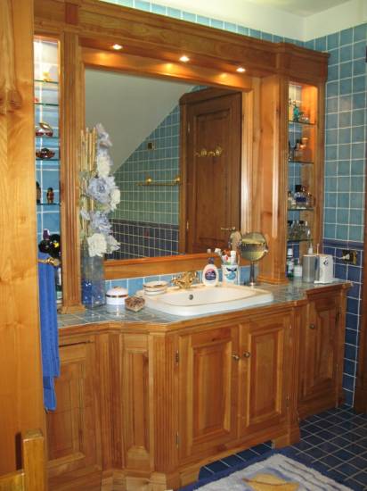 Bagno classico in legno di ciliegio tinteggiato naturale e piano top rivestito di maioliche design esclusivo.Arrediamo il vostro bagno su misura ottimizzando al massimo tutti gli spazi. I nostri arredamenti renderanno l’ambiente elegante e sofisticato e vi permetteranno di ottenere il bagno che avete sempre desiderato, in perfetta armonia con lo stile della vostra casa. Realizziamo sale da bagno lussuose, bagni moderni, bagni country, bagni rustici e bagni classici, elaborati dalla manodopera di sapienti artigiani e personalizzati nelle rifiniture e lucidature. Arredamenti mobili e bagni di lusso, Arredamenti mobili e bagni classici, Arredamenti mobili e bagni moderni, Arredamenti mobili e bagni country, Arredamenti mobili e bagni rustici, Arredamenti mobili e bagni shabby. La falegnameria Gli Artigiani dei f.lli Cordi realizza bagni in legno su disegno e personalizzate che vengono ultimate con laccature o verniciature di altissima qualità su campione di colore.
