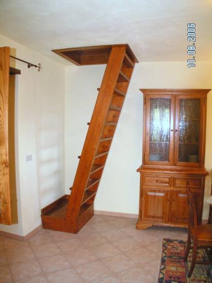 Scala in legno per soffitta 1 design esclusivo. Inoltre costruiamo in legno di qualsiasi essenza scale, balaustre, corrimano, camminamenti e soppalchi e ballatoi realizzati artigianalmente su misura. Scale e balaustre rustiche, Scale e balaustre classiche, Scale e balaustre laccate, Scale e balaustre decapate Grazie a innovative tecniche di cui disponiamo possiamo eseguire complicate lavorazioni ergonomiche e di precisione che verranno completate da lucidatura personalizzata. La falegnameria Gli Artigiani dei f.lli Cordi realizza controsoffitti su disegno e personalizzati che vengono ultimati con laccature o verniciature di altissima qualità su campione di colore. Arredamenti e mobili di lusso, Arredamenti e mobili classici, Arredamenti e mobili moderni, Arredamenti e mobili country, Arredamenti e mobili rustici, Arredamenti e mobili shabby.Maestri del legno in Roma - Arredamento made in italy classico, di lusso, moderno, country - Realizzazione di mobili su misura come: cucine, camere, armadi, porte, finestre, scale, oggettistica, mobili da bagno, sedie, tavoli, credenze, librerie, saloni, boiserie, controsoffitti.